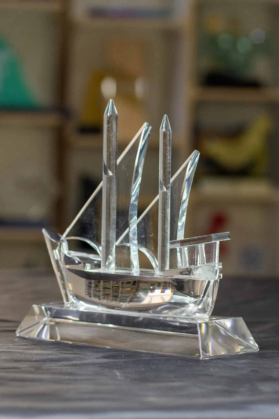 At The Awards DXB, we utilize state-of-the-art 3D laser engraving and crystal cutting technology to bring these complex maritime structures to life. Unlike standard flat trophies, this Dhow award is a multi-dimensional sculpture. The precision of the laser allows for intricate details on the ship’s hull and rigging, creating a “floating” effect within the transparent medium. The optical crystal used is lead-free and manufactured under extreme pressure, ensuring a bubble-free, high-definition finish that provides a perfectly clear canvas for your branding.