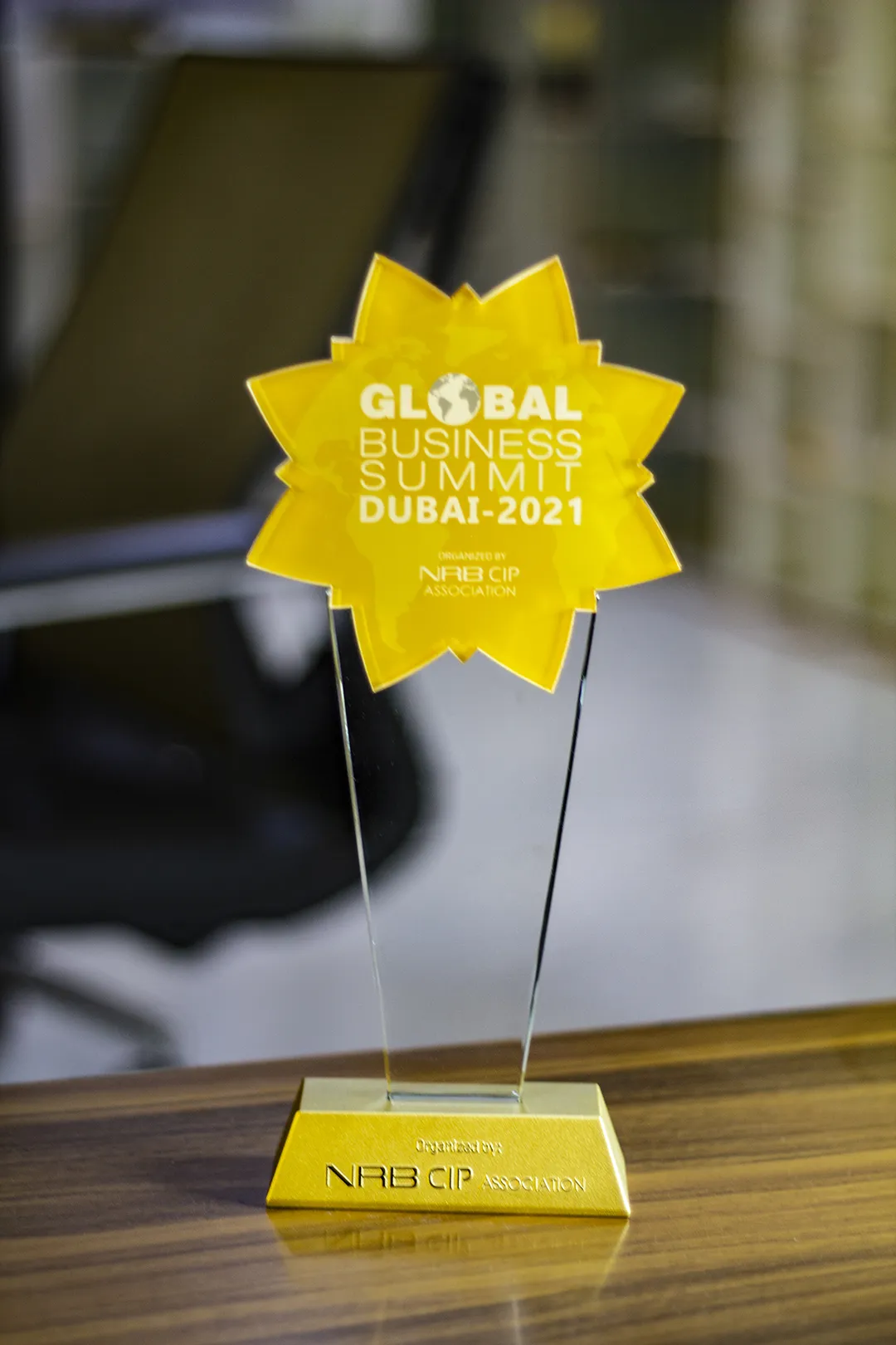 is a masterwork of corporate symbolism, specifically designed to capture the prestige and high-stakes environment of international business summits. This award served as the primary mark of distinction for the Global Business Summit Dubai-2021, an event that brought together influential non-resident entrepreneurs and commercially important persons. For The Awards DXB, this product stands as a prime example of our ability to blend diverse materials—gold-finished metal and high-clarity crystal—into a singular, cohesive narrative of success.