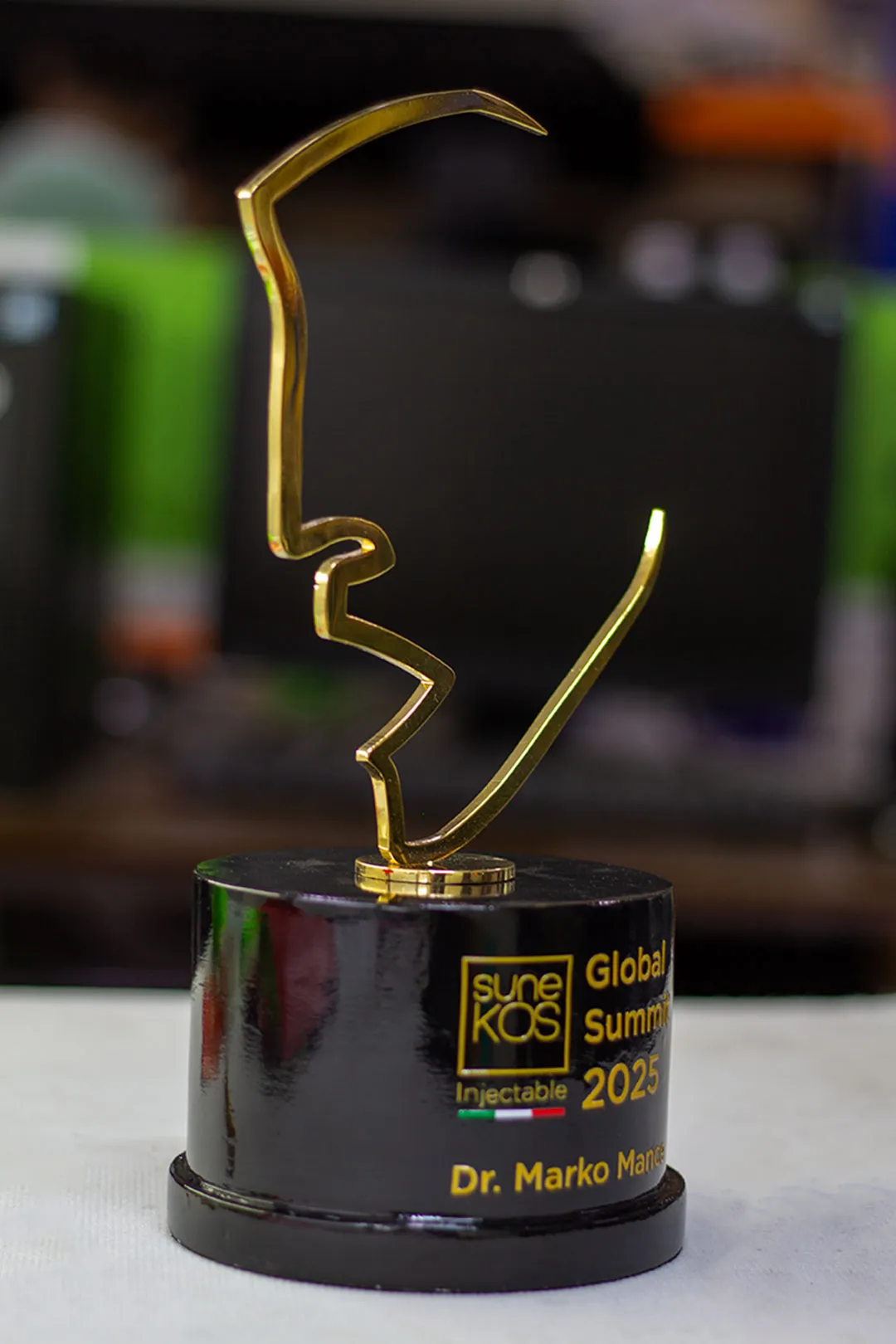 The abstract profile is more than just a decorative element; it symbolizes the “visionary”—the individual who looks ahead and innovates. This makes it a particularly fitting award for industries focused on the human element, such as healthcare, dermatology, and the fine arts. As seen in prestigious events like the SuneKOS Global Injectable Summit, this trophy communicates a message of professional mastery and global influence.