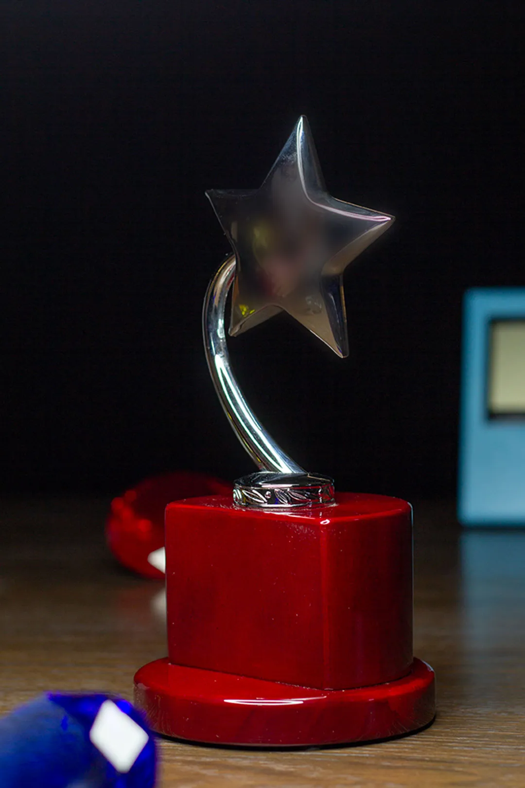 The combination of the sharp, clean lines of the five-pointed star and the smooth, organic curve of the pedestal neck makes this trophy a true work of art. The crimson base provides a substantial weight to the award, ensuring it feels as valuable as it looks when held. This isn’t just a trophy; it is a physical representation of an individual’s “shining” moment and their contribution to their organization’s success.