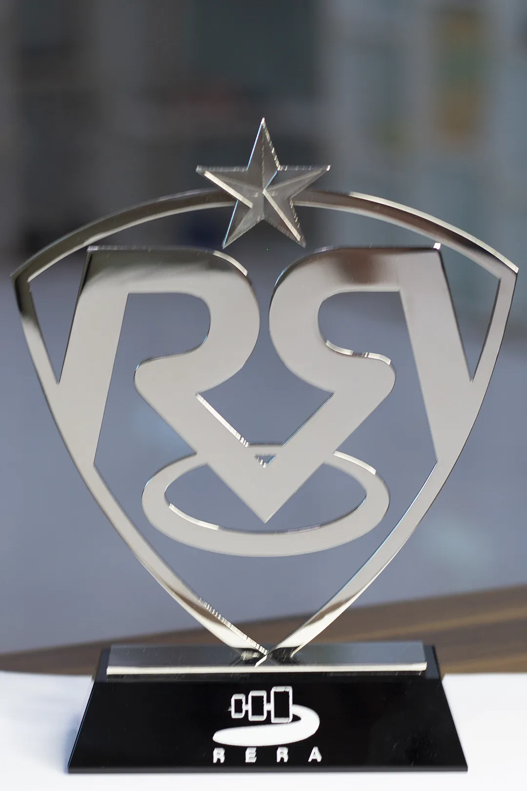 Every RERA Excellence Shield undergoes a rigorous quality control process. The laser-cutting of the internal logo elements is checked for burr-free edges, and the metallic plating is tested for “Mirror-Grade” reflectivity. We ensure that the weighted balance of the shield on its base is perfect, allowing it to be displayed safely on a CEO’s desk or in a glass-fronted boardroom cabinet.
