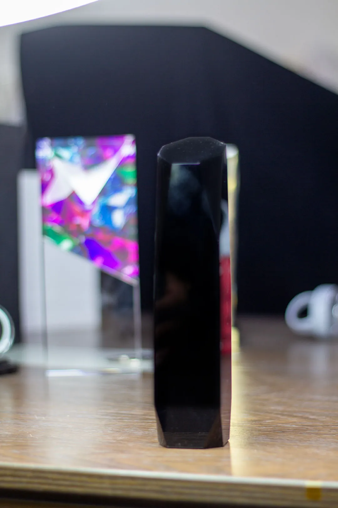 At The Awards DXB, we select only the finest black crystal, known for its uniform color density and ability to take a mirror-like polish. Unlike glass, which can have internal imperfections, our black crystal is solid and light-absorbing, providing a weighty, substantial feel when presented. The geometric facets are ground with mathematical precision, ensuring that every angle is sharp and every surface is flawlessly smooth. This level of craftsmanship ensures that the award is not just a trophy, but a collectible piece of contemporary art.