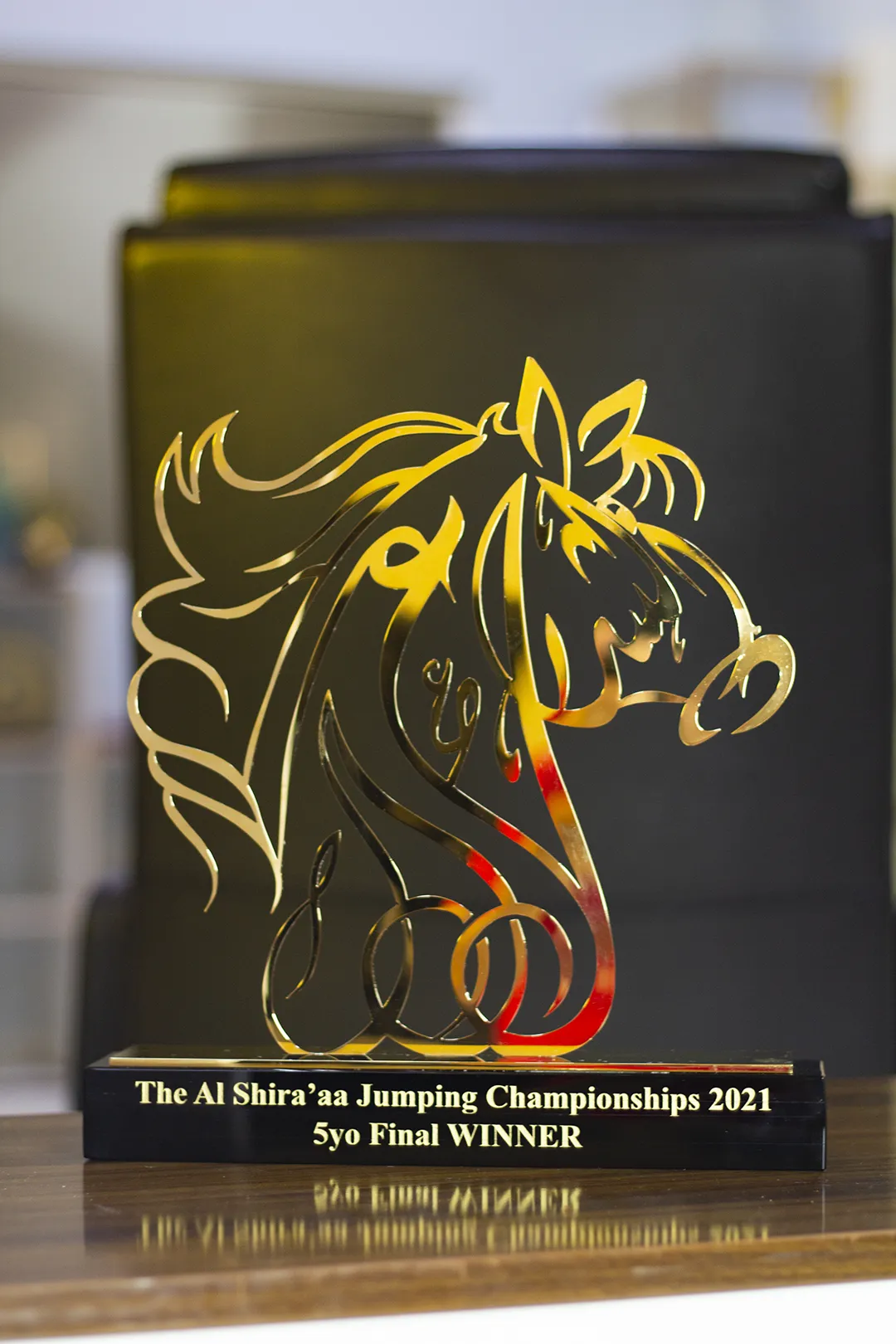 Whether it is for a prestigious championship like Al Shira’aa or a local equestrian club, this design provides a sense of majesty and triumph that standard trophies cannot match.