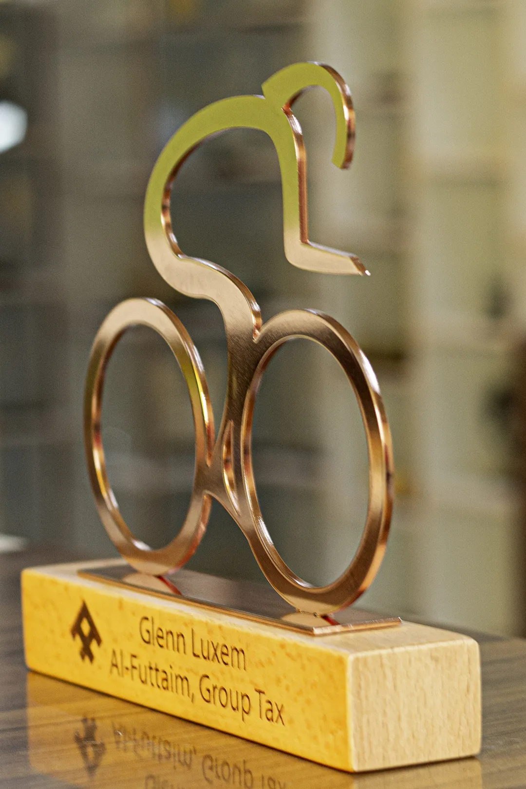 Precision is at the heart of cycling, and it is at the heart of our manufacturing. The Golden Velodrome award offers extensive customization through The Awards DXB specialized services:
