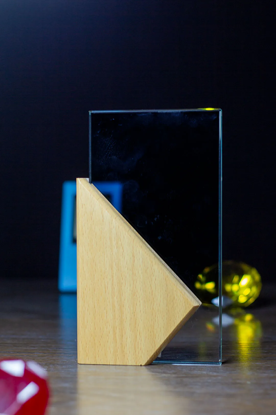 At The Awards DXB, we specialize in multi-material trophies that tell a story through texture. The light-oak toned wooden component provides a warm, organic feel that grounds the award, while the high-density optical crystal plaque offers a brilliant, light-refracting surface. The wood is hand-finished to a smooth, satin texture, ensuring it feels as premium as it looks. This combination of materials makes the Monolith Award particularly popular for organizations focusing on sustainability, architecture, construction, and creative leadership.